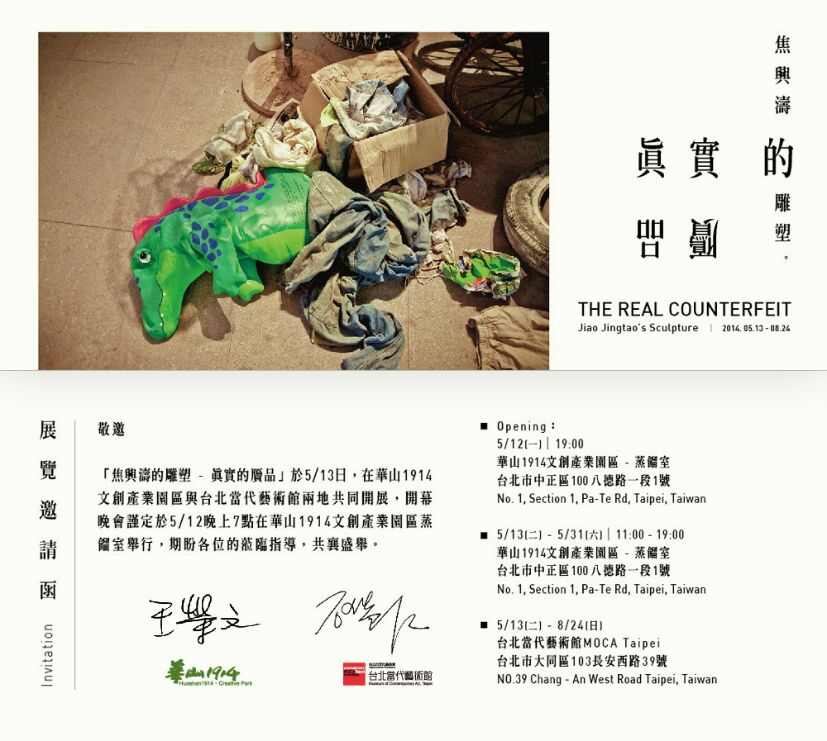 “真实的贋品——焦兴涛个展”将于2014513日至824日在台北华山1914蒸馏室展出,本展无疑是一个最能启动话题性、针对性、思辨性和欣赏互动机制的雕塑艺术展。本展的话题性可以关联到生活与美学、真实与幻觉,可以引发从辨识、发现、到深度阅读等不同的「观看」层次与机制。