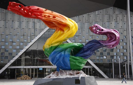 近日,76件(组)雕塑在上海世博园区世博轴雕塑艺术长廊、沿江景观带、主要入口广场以及江南广场四大区域安家落户。这些风格各异的雕塑出自中国、美国、澳大利亚、日本、俄罗斯等几十个国家雕塑艺术家之手,堪称一曲多元文化的交响。