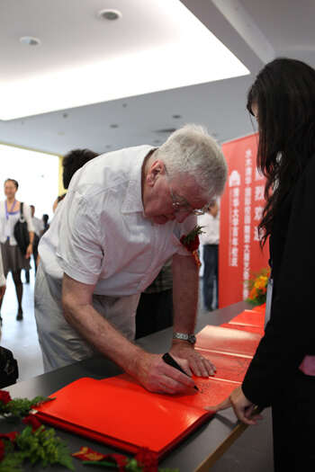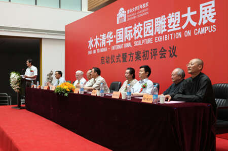 6月25日上午10:00,清华大学百年校庆——水木清华•国际校园雕塑大展启动仪式暨雕塑作品方案初评会在清华大学美术学院举行。清华大学副校长谢维和、中国美术家协会副主席、中国国家画院院长杨晓阳、清华大学美术学院党委书记李当岐、常务副院长郑曙旸、中国雕塑学会会长、清华大学美术学院雕塑系主任曾成钢和由全国雕塑界著名专家学者组成的大展艺术委员会委员及清华大学美术学院清华大学师生等近300名师生人参加了启动仪式。